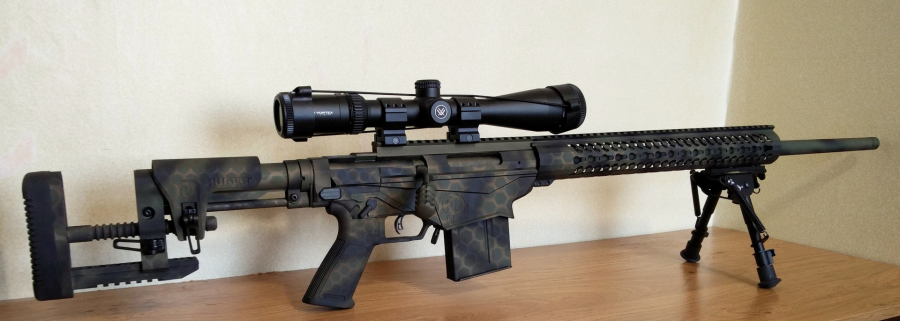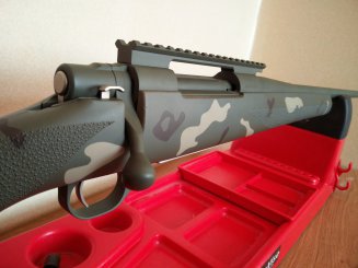 Steyr Mannlicher in OD green and Flat dark earth with scrim pattern.